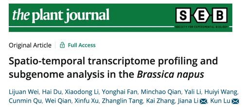 近日,植物学TOP期刊The Plant Journal在线发表了太阳成集团tyc234cc李加纳/卢坤教授团队发表题了为"Spatio-temporal transcriptome profiling and subgenome analysis in the Brassica napus”的研究论文,揭示了完整的甘蓝型油菜时空转录组图谱,挖掘了甘蓝型油菜生长和发育的重要基因。
