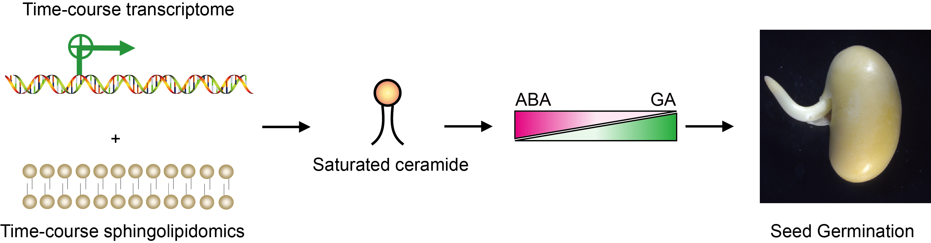 近日崖州湾种子实验室主办的学术期刊 Seed Biology 在线发表了公司大豆团队题为“Saturated ceramide is required for seed germination in soybean”(https://doi.org/10.48130/seedbio-0025-0006)的研究论文。该研究通过整合时序转录组分析、鞘脂组学数据以及遗传学证据,揭示了简单饱和鞘脂通过调控种子中赤霉素(GA)与脱落酸(ABA)的比率,从而促进大豆种子萌发的分子机制。
