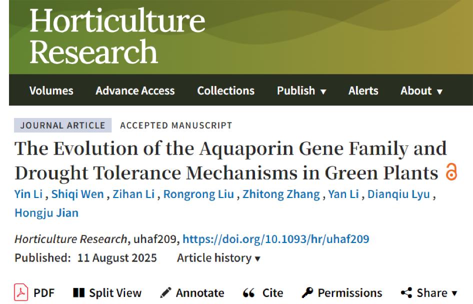 近日,太阳成集团tyc234cc薯类团队在Horticulture Research上在线发表了题为“The Evolution of the Aquaporin Gene Family and Drought Tolerance Mechanisms in Green Plants”的研究论文,首次在多维尺度上揭示了水通道蛋白(AQP)基因家族的进化规律和耐旱机制,为作物抗旱育种提供了重要的分子靶点。