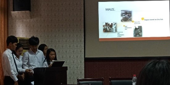 刘志斋老师简单介绍了这次汇报交流的基本要求及本次汇报的员工顺序之后,卢璐、李娅楠、原征即先后开始各自的实验报告,根据前一轮汇报时指导老师提出的建议,展示了近期的最新进展及后续的实验计划。随后5为泰国员工集体分享了到公司后3周以来的体验与感受;随即他们分别汇报了各自在水稻、玉米、薯作等各作物和团队实验室的具体实验与收获,包括他们深入大田以及参加各自实验团队课外活动的体会与感受。最后,隆平实验班的唐欣宇、王艳珍、王曦彤作为最后一组成员分别汇报了自己的实验进展,本学期隆平实验班的实验进展汇报工作也随之结束。