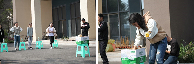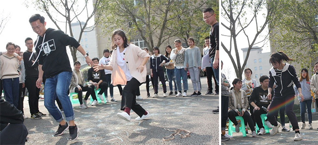 接下来的一个游戏为“步步高升”。既锻炼体力又考验脑力,为了节约时间,同学们健步如飞,头脑和肢体并行,数字口令一出,就犹如飞起来似的,几乎一跃到了终点,一旁的同学加油喝彩,场面一度沸腾,真是令人感叹不已!
