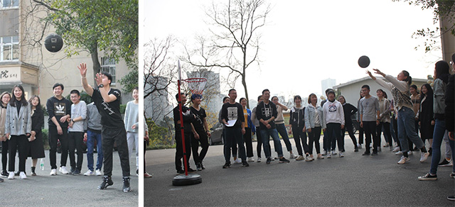 最后一个游戏是“幸运投篮”。有的女生巾帼不让须眉,投起篮来丝毫不弱于男生。她们一跃而起,身手矫健,眼神坚定,一眨眼球就顺利地入了框,引得在场多少男生女生的羡慕啊!