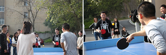 在“王者乒乓”游戏环节中,参赛的小组成员一个个都精力充沛、充满活力,展现出自己最好的一面。一旁的同学们为他们加油助威,个个鼓掌呐喊,成功地将气氛推向了高潮。
