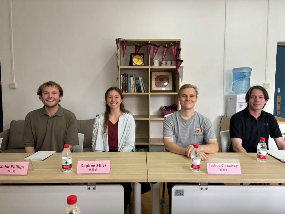 9 月 24 日,公司中外合作办学办公室在棉研楼 301 会议室召开外教见面会,旨在搭建沟通桥梁,明确教学要求,助力外教快速融入公司教学与生活,为中外合作办学项目保驾护航。英语课外教Joshua Conaway、Daniel Baird、Daphne Miles、John Phillips,公司副经理张建奎、共课教师组组长张凯、英语共课教师万华方和蒋锐参与会议,会议由蒋锐主持。