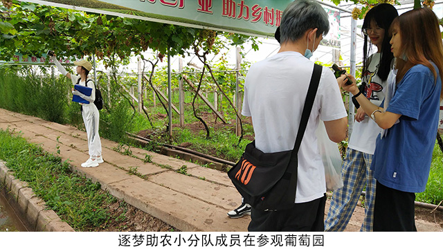 “逐梦助农”小分队选择以“互联网+”的新模式助力乡村扶贫工作。小队成员前往了内江市永安镇的葡萄园,在创始人周璇曦的带领下,大家看到了农村创业者过硬的专业知识和埋头苦干的认真态度。决定通过拍摄微视频和进行网络宣传的方式扩大农产品的知名度,同时打造乡村旅游项目,让更多人了解永安镇的乡土特色与传统文化习俗,吸引更多游客,实现销售业与旅游业相结合,构建产业经济链。除此之外,小队成员还开通了自己的网店以拓宽葡萄园的销售渠道,为永安镇的脱贫尽心尽力。葡萄园在微信公众号“正园小店”进行销售。
