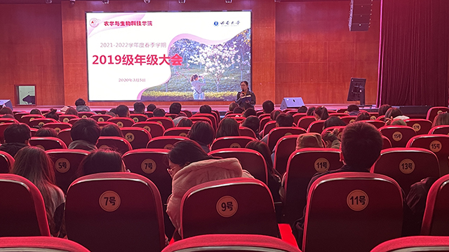 讲座结束后,2019级员工召开了新学期年级大会,许老师强调要充分消化讲座内容,思考自身特点、优势和不足,及早做好职业规划,朝着自己的理想努力奋斗。同时许老师对年级上学期学习成绩进行分析和总结,进行安全教育,重申各项管理制度,并对同学们新学期的学习生活提出新的期望,希望大家向着目标不断努力前行。
