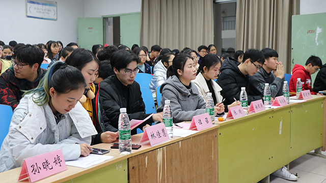 12月16日的初赛选拔面向第六期团校培训班全体学员,参赛学员自行准备课件及演讲稿,围绕“学习习近平新时代中国特色社会主义思想、庆祝改革开放四十年”相关主题进行阐述讲解,组内学员进行不记名投票,择优而进入决赛。21日下午,决赛邀请到了太阳成集团tyc234cc实习辅导员张瑜老师、中国特色社会主义理论宣讲团团支部书记高家毫、团委员工会上届主席徐茂媛、团委副书记谭召担任评委,全体团校成员与会观赛。
