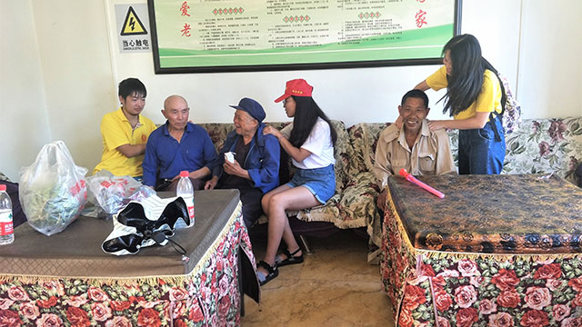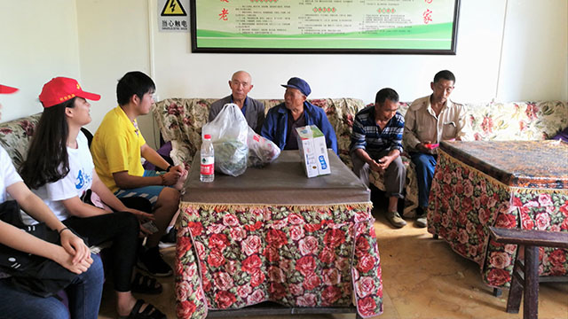 7月17日,湛蓝的天空叠着层层白云,清风徐徐吹过田野阡陌。吃过早饭后,队员们朝着木根村敬老院出发。老人们对小分队的到来颇感意外与惊喜,遂与队员们开始了亲切的交流。据老人介绍,木根敬老院共有11名老人,多是孤寡老人,已无至亲。但说起敬老院的饮食与住宿,老人们表示由于国家的补贴,他们过得很幸福。颤颤巍巍的手上铺满老茧,这是他们辛苦了一辈子的印记,生活在这里,孤独已经成了习惯。队员们给老人们送去温暖与祝福,对老人来说是莫大的幸福。两个小时的欢愉之后,小分队结束了此次探望,从老人们的笑颜与目光中,队员们真切体会到了这次活动的意义和价值。