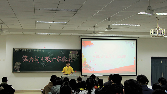 随着热情激昂的中国共产主义青年团团歌,第六期团校培训班开班典礼正式落下了帷幕。团课第一讲也正式开始。校团委副书记于涛为广大学员带来了“青年思想引领与新媒体建设”的专题讲座。他说我们应该成为“团控英雄”,引经据典、结合现实、剖析自身,为大家讲述了精彩的一堂课。与君初识如故人,听君一言胜读书。