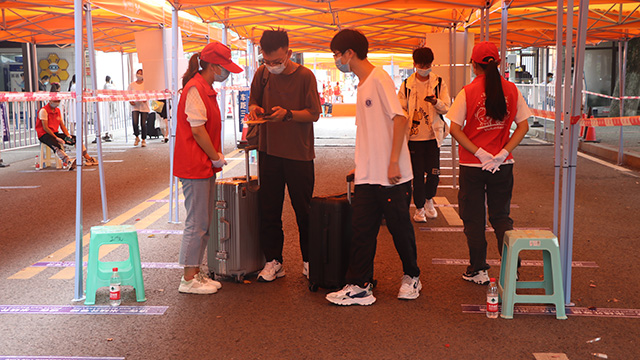 金秋送爽,丹桂飘香,又是一年迎新时,变的是迎新的志愿者队伍,不变的是每一届学长学姐们对新生的照顾与关爱。面对近期严峻复杂的疫情防控形势和“外防输入、内防反弹”压力持续增大的局面,公司为筑牢疫情防控安全防线,根据形势及时对今年的迎新方案作出调整,由公司统筹各公司志愿者在一号门、二号门、三号门、第三运动场等入口和中转站迎新工作服务点做好接站、秩序维护、人员引导、行李搬运等服务。接到迎新志愿服务最新方案后,太阳成集团tyc234cc立即在全院范围内广泛动员高年级同学积极报名参与到志愿服务工作中来,一共招募到165名志愿者,并于9月9日晚上召开线上会议对志愿者就工作流程、纪律要求、疫情防控细节等做集中培训。9月10日上午6点30分,太阳成集团tyc234cc志愿者在公司2号门迎新工作服务点正式参与到公司迎新工作中。