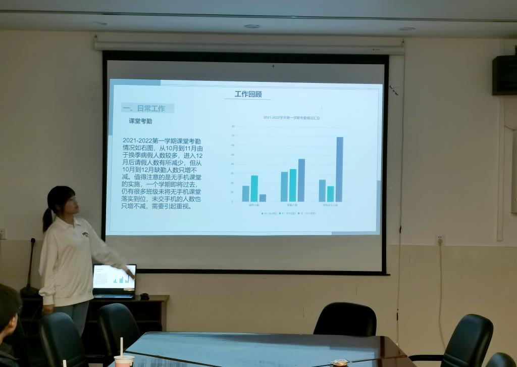 首先,各部门负责人围绕思想引领、成才服务、权益维护、自身建设、对外宣传等方面,依次进行工作述职。述职汇报以PPT展示和演讲的形式进行,既有对工作特色亮点的展示,也有对工作不足深刻总结和下一步工作打算的谋划。体育部在本学期完成了新生运动会、羽毛球联赛、“太阳杯”排球联赛以及“新生杯”篮球联赛中负责选拔、训练等重要工作。学科部在课堂考勤、辩论赛举行、学术论文大赛、笔记评选大赛、“学霸说”栏目建设等工作中取得了一定成效。宣传部负责员工会官Q和公众号的运营以及各活动的宣传,对新闻报道时效性不足等问题进行了反思。组织部在本学期完成了团组织关系转接、“青年大学习”的督促、各团支部“每周一学”活动开展和第九期团校培训班的举办等工作。就业创业部举办了简历大赛和完成了各大创新创业赛事的组织动员工作。办公室在物资管理、财务报账、内部枢纽、对外联络方面为各项活动开展提供了后勤保障。文娱部牵头完成了“植沐风雨 盛世芳华”2021年太阳成集团tyc234cc农学部迎新晚会的策划、组织等工作,以独特的方式为观众献上了一场视听盛宴。志愿者工作部举办了迎新志愿服务、“耕读园”“爱驻夕阳”“志愿者嘉年华”等多项志愿活动,服务公司与社会,发扬志愿者精神。社会实践部认真总结暑期三下乡社会实践活动,形成相关成果,申报各类奖项并启动筹备寒假员工分散实践,举办公务员模拟考试等活动链接各类社会资源为公司同学提供服务。团委书记许莹竹老师依次对各部门的总结述职做出点评,充分肯定了大家的工作成绩,针对各部门的工作性质、工作不足提出了相应的改进意见,并列举了许多值得大家学习的其他高校、院系的精品活动、宣传栏目等。许老师强调,各位同学要在履职尽责中服务同学,锻炼自我,把自己培养成为政治素质过硬、眼光开阔、思维活跃、执行力强、服务意识好、语言文字表达能力突出、责任心强的优秀员工骨干。