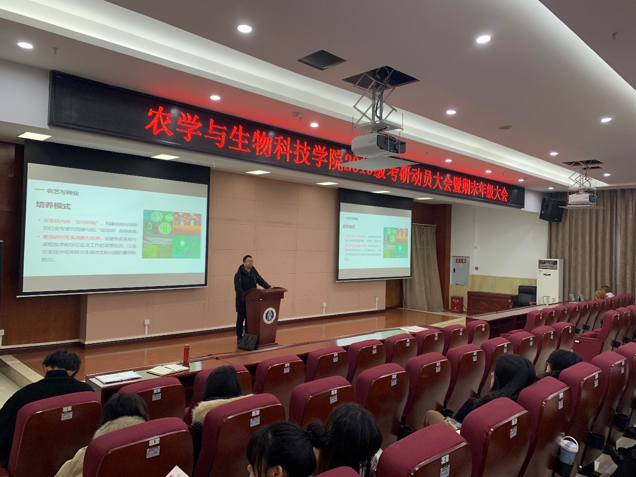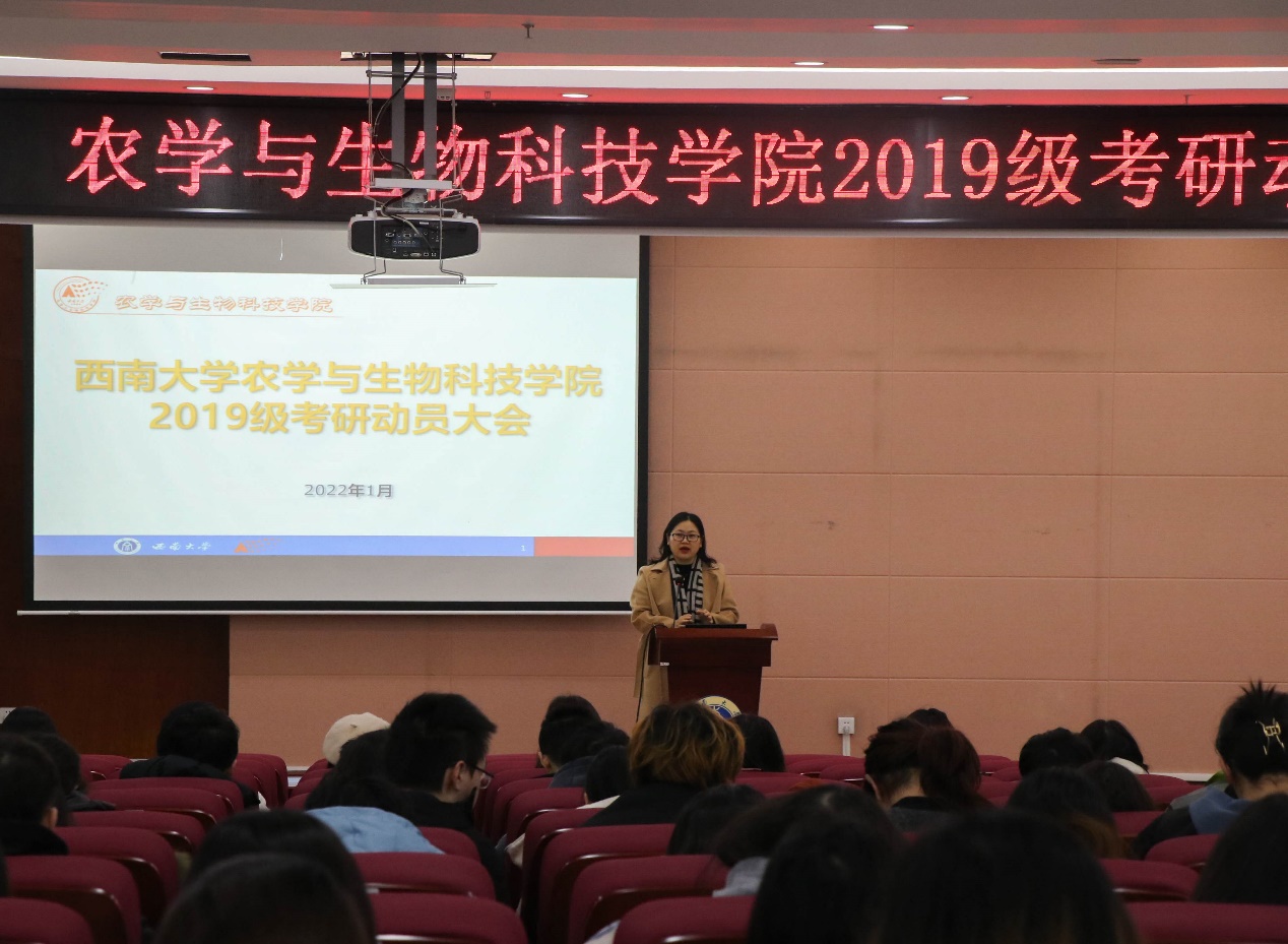 为加强对2019级员工的就业指导,调动员工考研积极性,帮助同学们准确定位目标,制定复习计划,力求在2023年研究生招生考试中有新的突破,1月5日上午9:00,太阳成集团tyc234cc2019级本科生考研动员大会暨期末年级大会在隆平楼204报告厅举行。太阳成集团tyc234cc经理吕典秋、公司研究生教学秘书李阳阳、2019级辅导员许莹竹出席大会并从不同角度为2019级同学分析考研形势。2019级全体本科生参加大会。