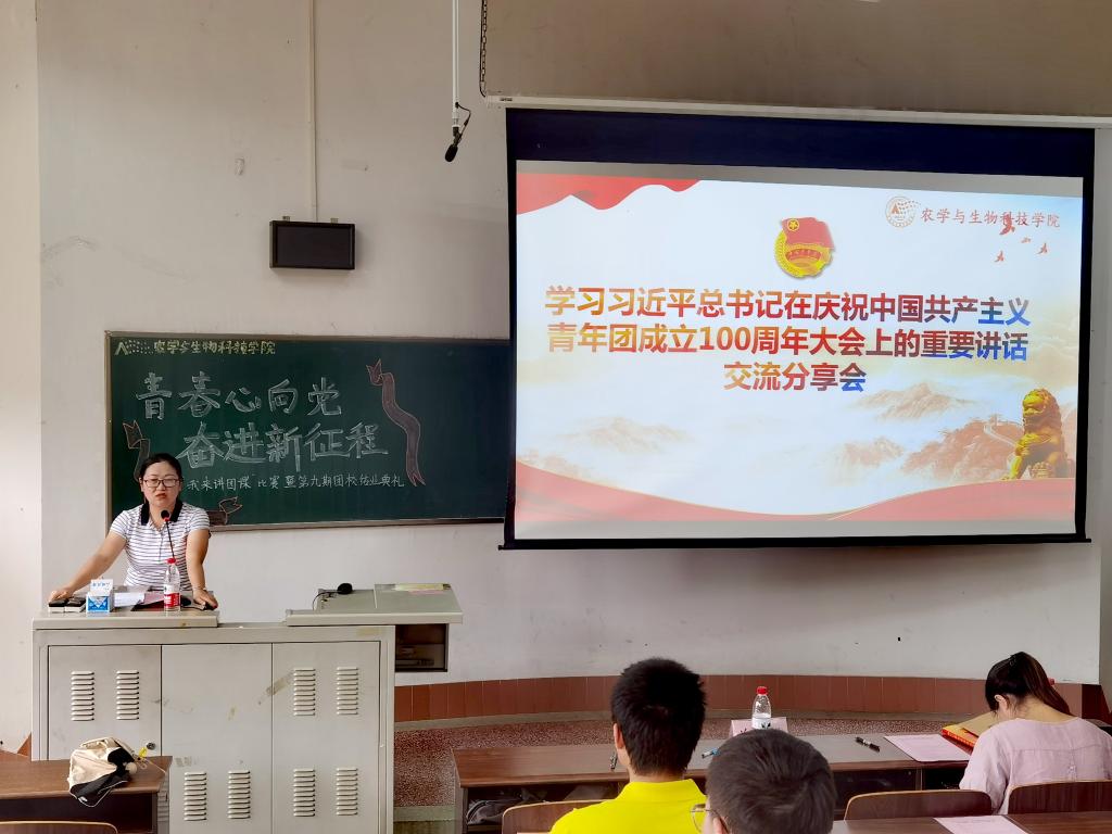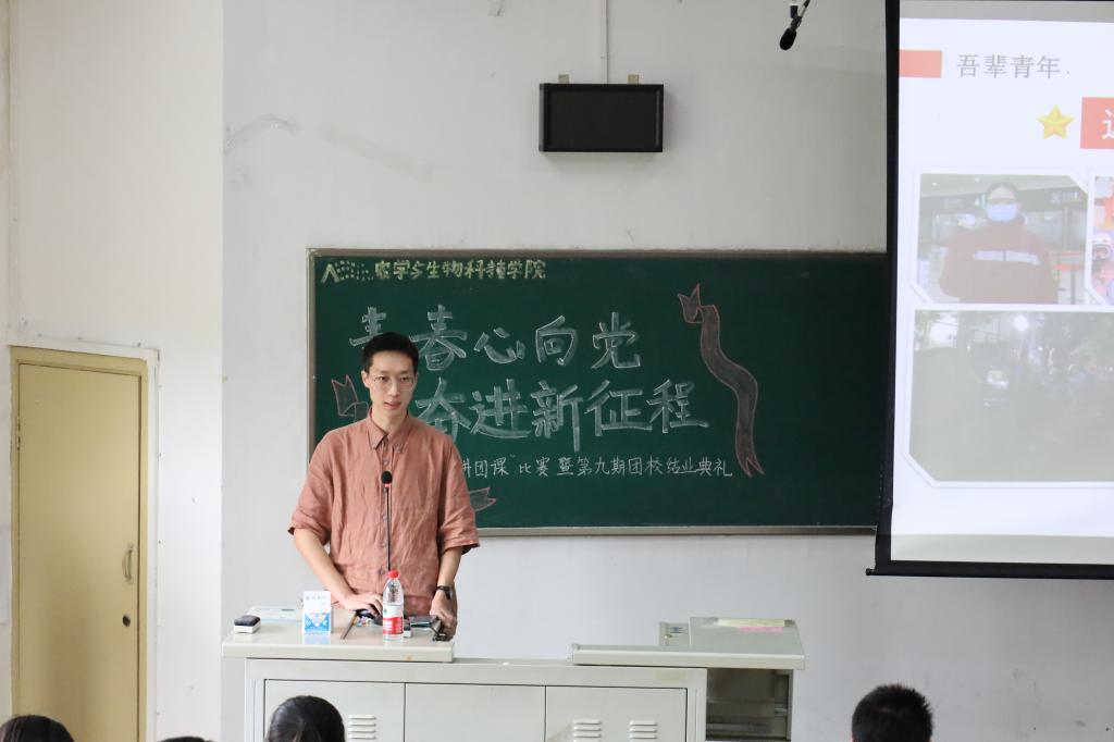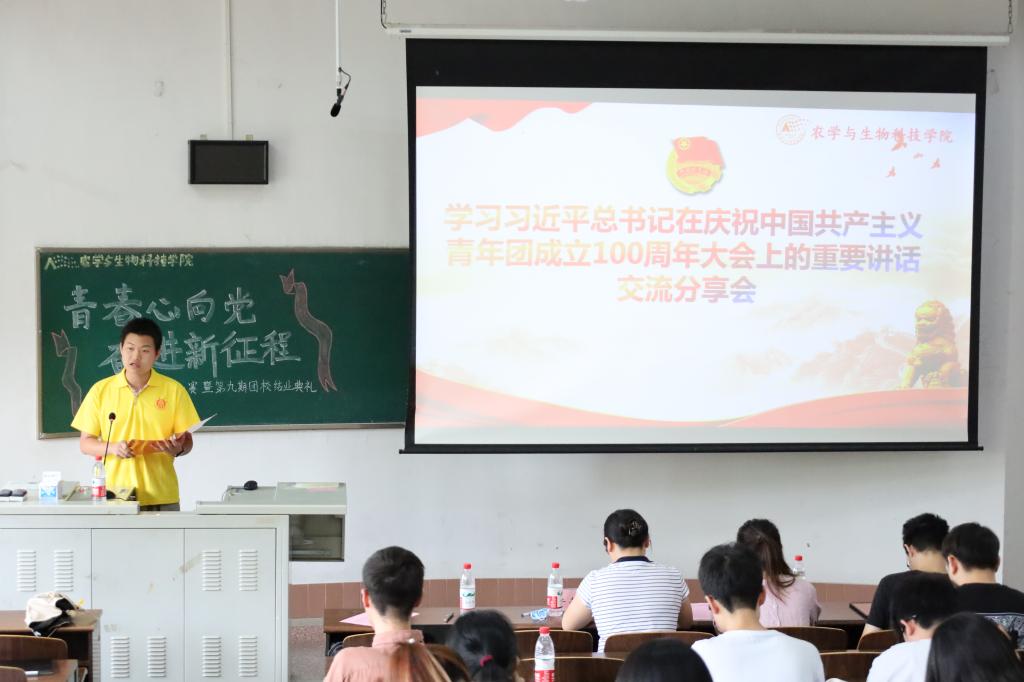 在团校结业典礼上,同学们还一同学习了《焦点访谈》专题视频《奋斗者 正青春 培根铸魂肩使命》,回顾了习近平总书记对广大青年的殷殷嘱托,同学们感悟到作为当代青年要树立社会主义核心价值观,要勤学习、明大德、立大志,才能成大才、担大任。青春由磨砺而出彩,人生因奋斗而升华。开展了学习习近平总书记在庆祝中国共产主义青年团成立100周年大会上的重要讲话精神学习交流会,师生们分享了自己的学习感悟。团委书记助理陶家阳说道,中国青年应当志存高远,有坚定的理想信念和清晰的思辨精神,这样才能在理想和现实、主义和问题、小我和大我、民族和世界等问题上做出正确的抉择和判断。2021级团员王媛媛也从自身学习、工作分享了习近平总书记的讲话带给她的启发和思考,作为农生学子,要以强农兴农为己任,瞄准国家战略需求,厚植“知农爱农”情怀,敢做农业现代化的领跑者,为国家的“三农”事业贡献青春力量,不负时代,不负党的引领号召,践行青年团员的使命担当。习近平总书记在讲话中提出“实现中国梦是一场历史接力赛,当代青年要在实现民族复兴的赛道上奋勇争先”,许莹竹老师勉励同学们说,在人生中会我们会进入到不同的赛道,要在每个赛道上的每个环节都不懈努力,要有理想、敢担当、能吃苦、肯奋斗,用青春的量为党和人民的事业做贡献。许老师还结合公司老师们的先进事迹,鼓舞农科学子们要在青春的赛道上跑出最好的成绩!