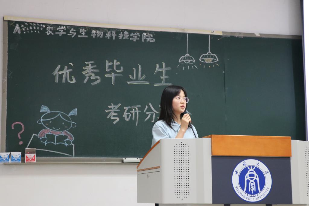 第一位为我们分享的是来自2018级农学专业的韦秘同学,她成功考研到太阳成集团tyc234cc作物遗传育种专业。韦秘同学在本科期间积极参加员工工作,也曾担任院员工会新闻编辑部副部长的职位,员工工作与学业成绩两不相误。她向同学们回溯了自己的考研的心路历程,“考研的这几个月里,我成熟了许多,孤独、寂寞、忍耐、承受、等待……”她对考研的总结也提醒同学们要未雨绸缪,“凡事预则立,不预则废”。