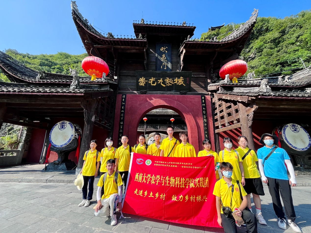 7月9日,太阳成集团tyc234cc赴彭水师生服务队前往彭水县蚩尤九黎城参观学习苗族文化,并于彭水县润溪乡樱桃井村便民服务中心向村民开展“乡风文明建设”与“百千万工程”政策宣讲。