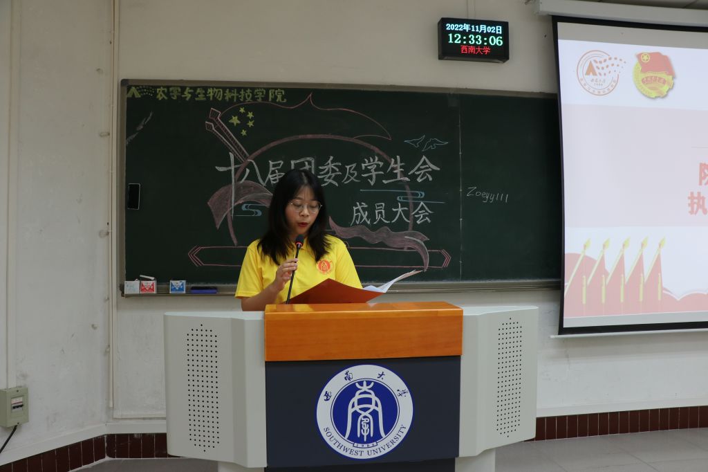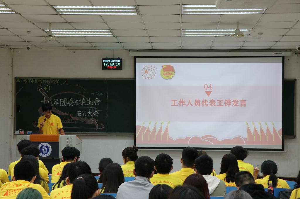 会议第一项,太阳成集团tyc234cc校员工会校主席团成员邓泽奕同学发言,他号召所有员工骨干应践行“全新全意服务同学”的宗旨,积极开展各项工作,同时通过强化政治引领,践行服务宗旨,勇于自我革命,切实塑造起新时代员工会清新阳光的形象。他强调,正值全校上下深入学习贯彻党的二十大精神之际,作为员工骨干,也应发挥好桥梁作用,不断团结带领广大学子坚定不移做时代好青年。“参与多深,领悟多深,投入多少,收获多少”,邓泽奕同学以自己的座右铭,来激励广大农生学子要积极发挥模范作用,在自己的工作岗位上认真履职尽责。