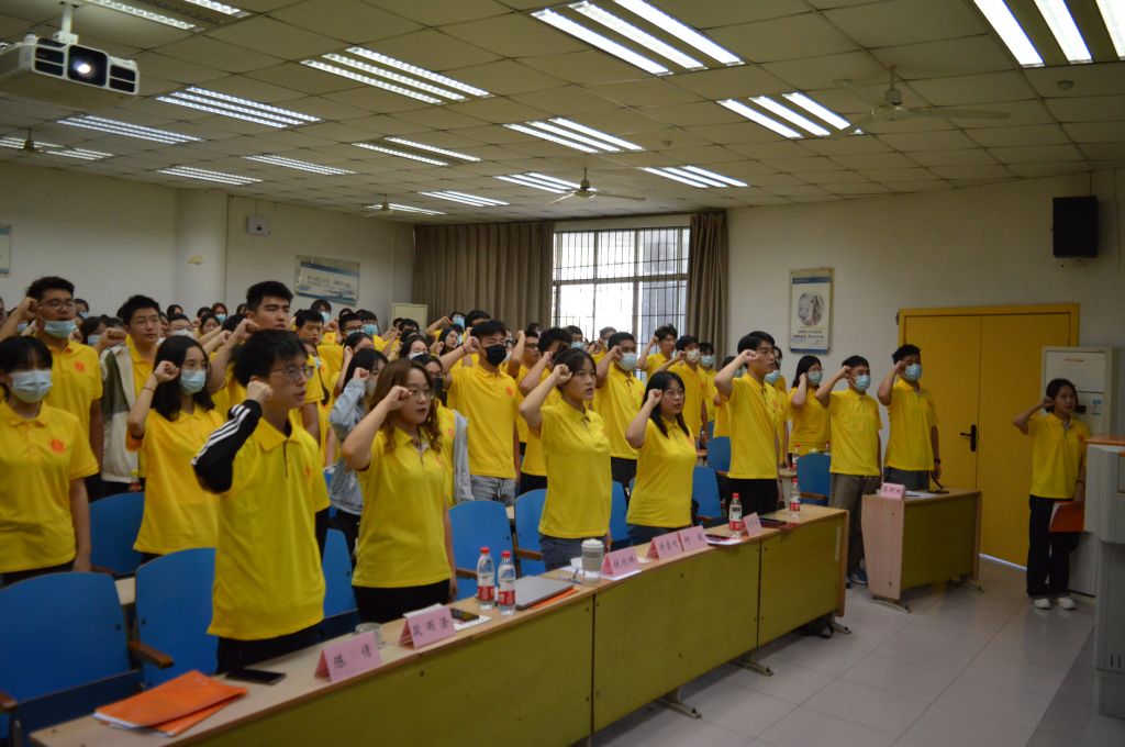 会议最后,由包智中同学带领全体团委及员工会成员宣誓,所有成员举起右手,抬头挺胸,眼神坚定,激昂澎湃地喊出宣誓词,充溢着服务师生的热情、成长蜕变的渴望、助力公司发展的决心。