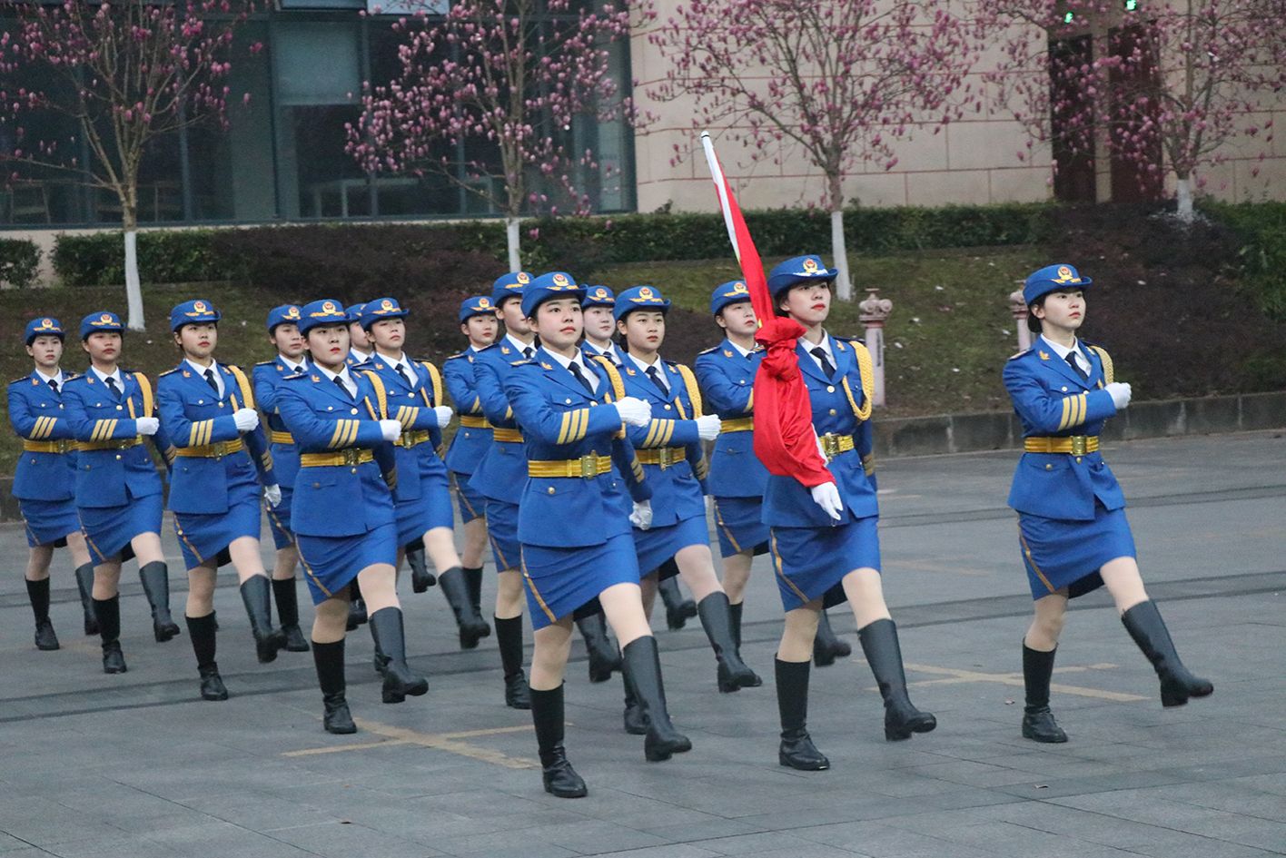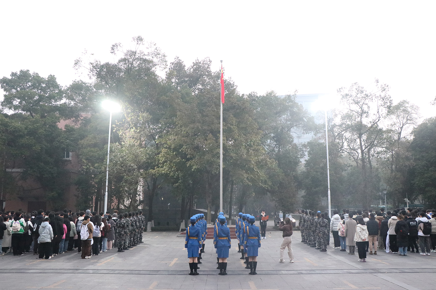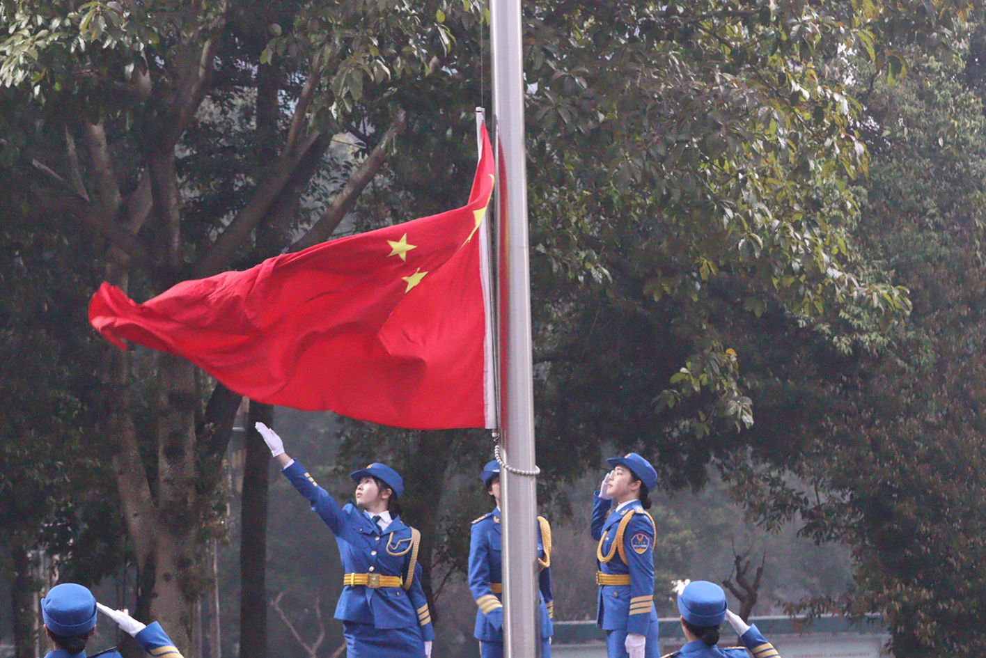7时整,曙光初升,升旗仪式正式开始。全体师生庄严肃立,太阳成集团tyc234cc女子国旗班成员迈着整齐划一、铿锵有力的步伐,护送着五星红旗正步走向旗杆。伴随雄壮激昂的《义勇军进行曲》,五星红旗冉冉升起,全体师生高唱国歌,向国旗行注目礼。