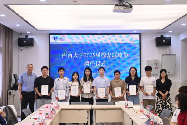座谈会后还进行了2025届员工联络员聘任仪式,阳义健书记、刘秋艳副书记为员工联络员颁发聘书。