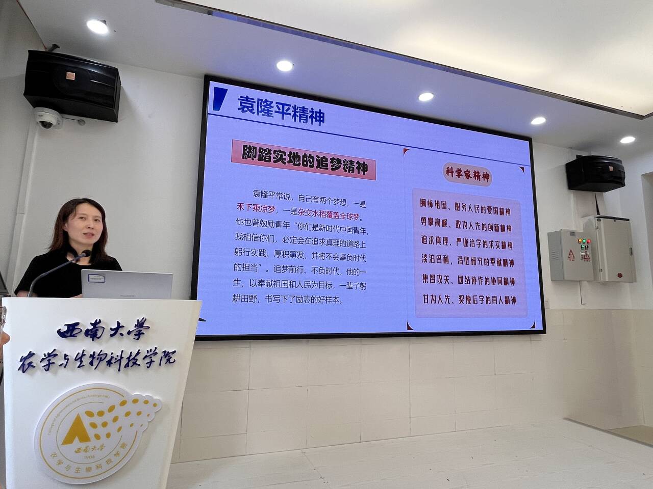 仪式伊始,2024级隆平班主任董红利老师向同学们详细介绍了隆平班的情况。从班级的设立初衷、培养目标到特色课程与实践活动,董老师娓娓道来,让同学们对隆平班有了更为全面且深入的了解,也激发了大家对未来学习生活的期待。