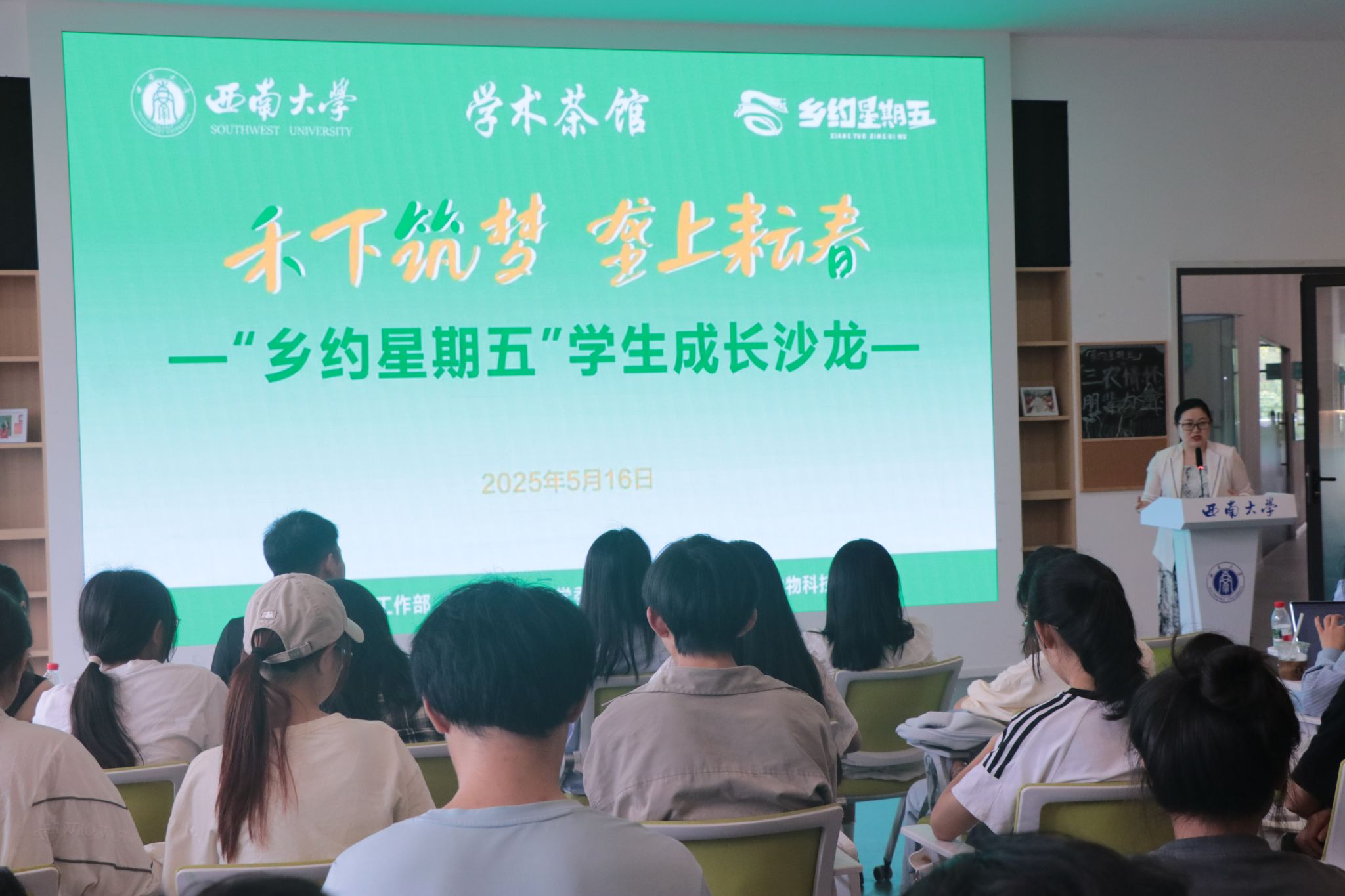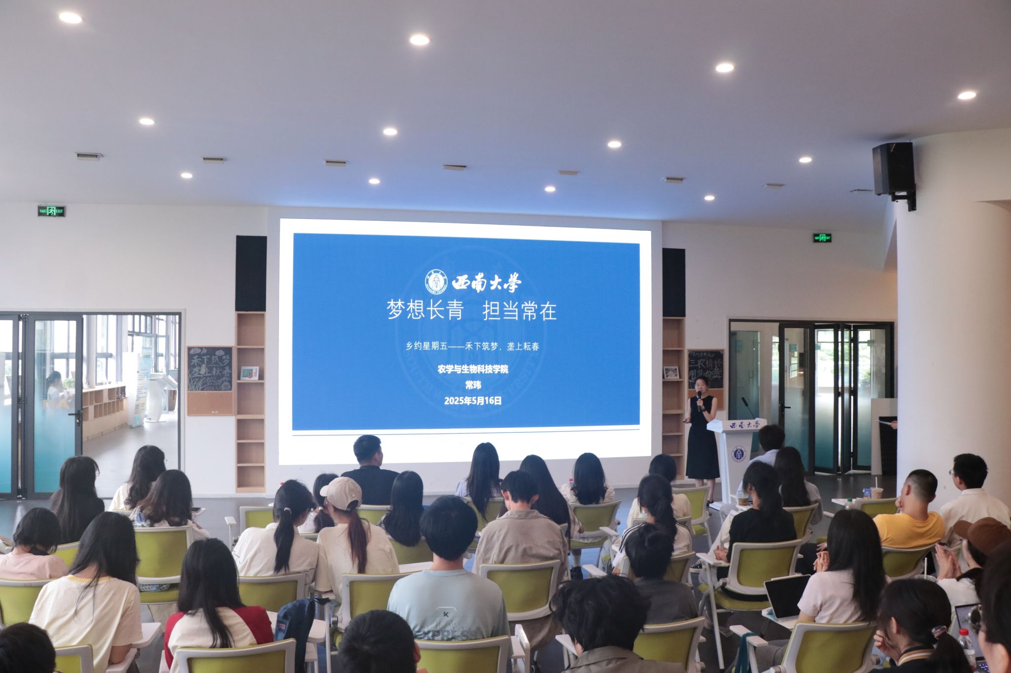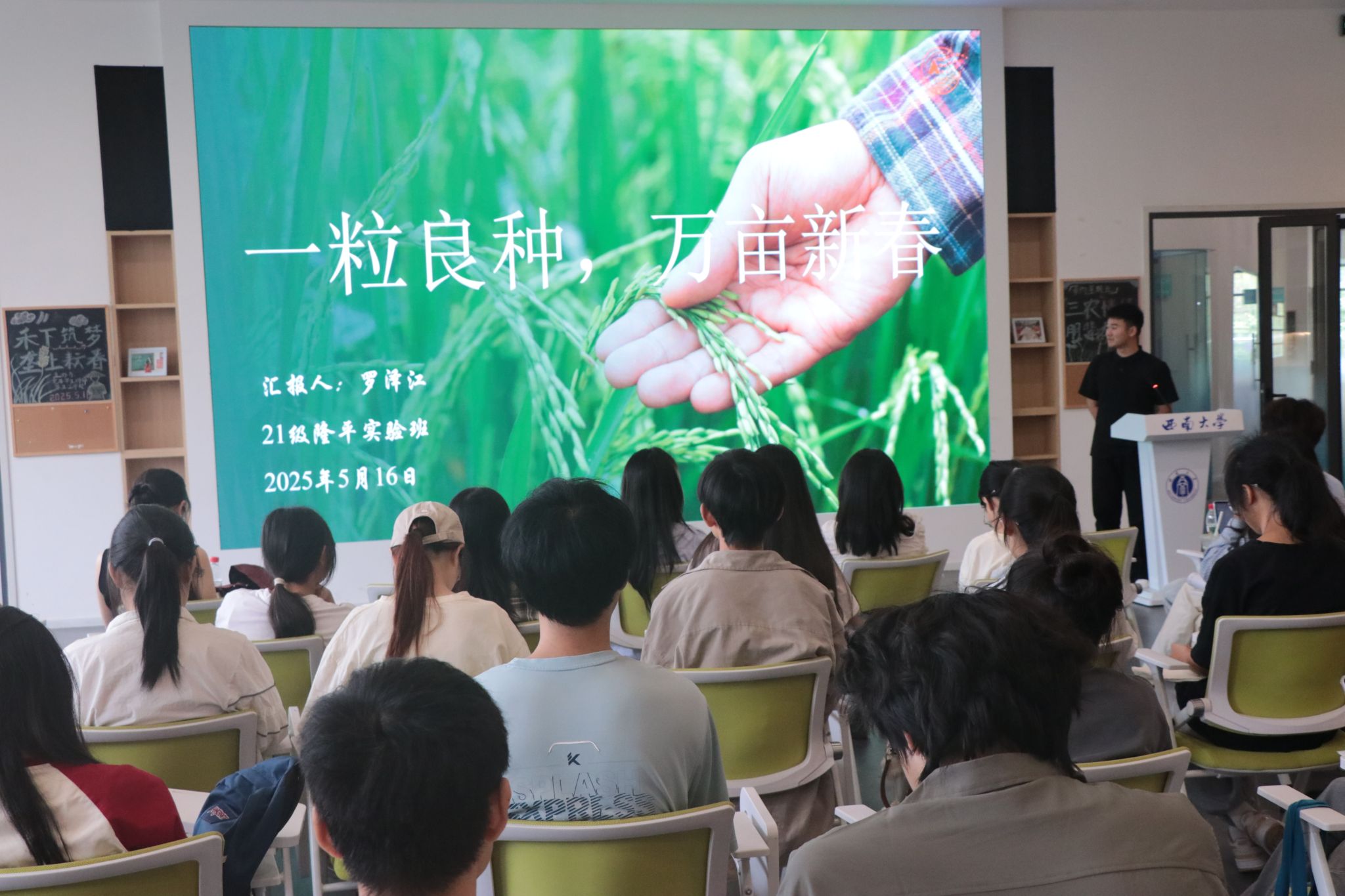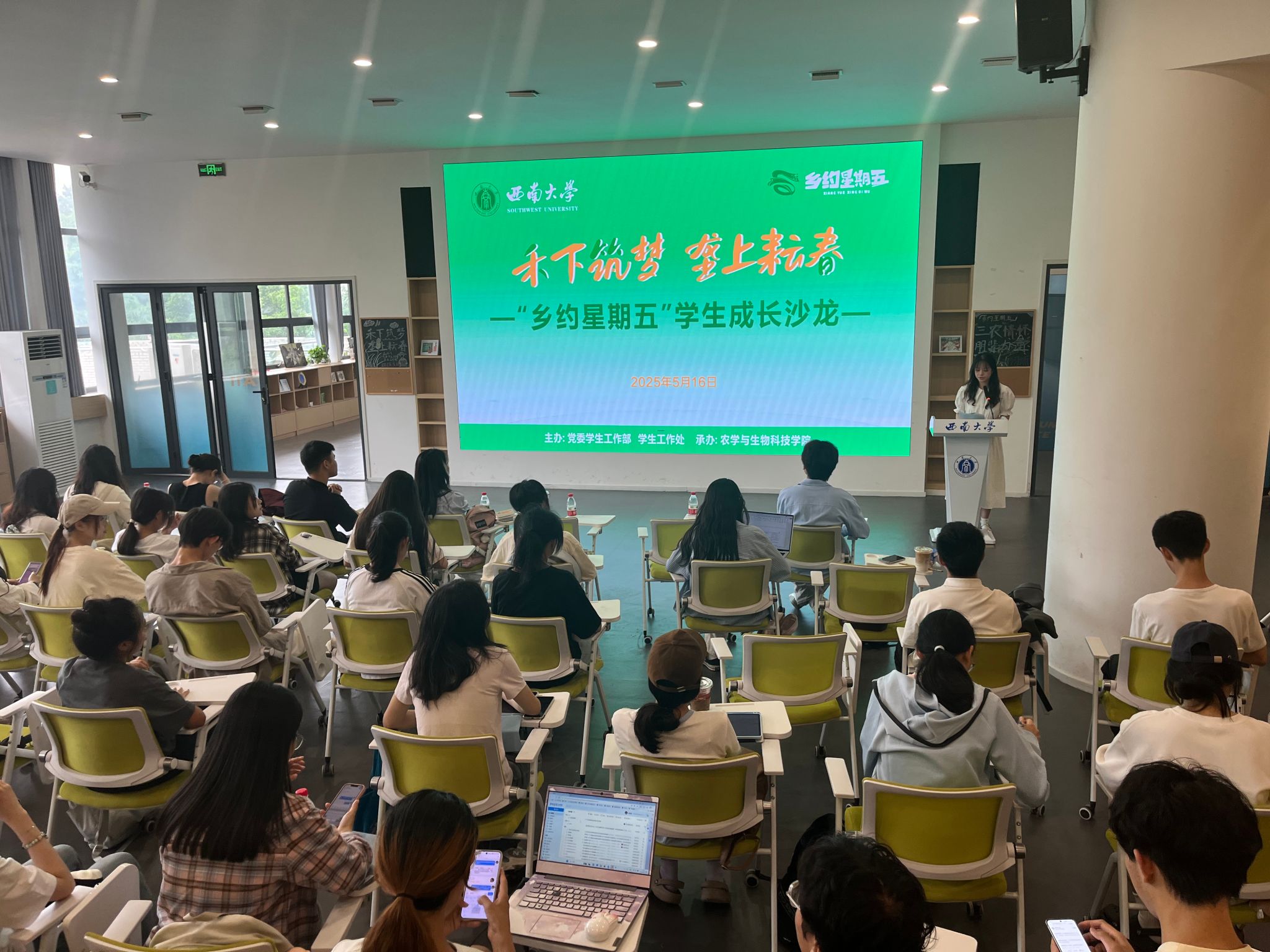 5月16日下午,由太阳成集团tyc234cc党委员工工作部、员工工作处主办,太阳成集团tyc234cc承办的第八期“乡约星期五”员工成长沙龙在青李空间多功能厅成功举办。本期沙龙以“禾下筑梦,垄上耘春”为主题,通过邀请公司4名优秀员工代表,围绕青年农学人的成长与实践展开分享,为农科学子带来了一场思想与经验的盛宴。公司团委书记许莹竹老师、部分涉农专业员工参与活动,本次沙龙由公司2023级员工聂雪莹主持。