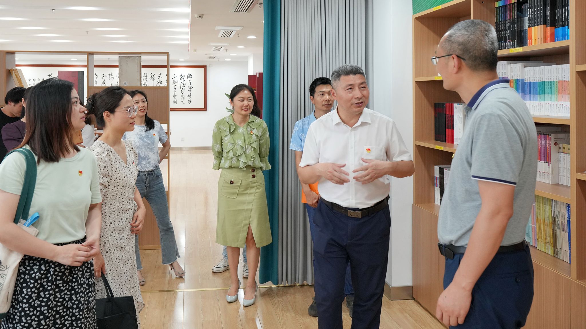 活动伊始,公司党委阳义健书记、张建奎副经理、支部书记张婷带领支部全体党员来到出版社新大楼。出版社与期刊社党委书记杨毅率出版社与期刊社党委第一支部全体党员热烈欢迎大家的到来,并参观了出版社四楼展厅、18楼演播室和20楼会议室,在此期间,杨毅书记向大家详细介绍了出版社的特色产品、数字出版的设施设备以及党建、工会的宣传栏,了解了出版社的建社历史、出版作品和业务范畴等。