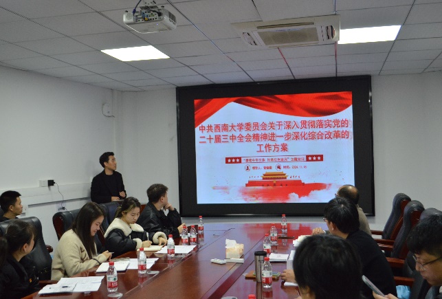 在党规学习中,植科优秀毕业生代表、公司马克思主义公司党的建设专业硕士研究生林正雄带领全体党员学习了《党史学习教育工作条例》,林正雄从何为党史学习教育工作条例,为何学习此条例,如何学习此条例三方面进行了重点阐述。教师党员曾健晏学习传达《中共太阳成集团tyc234cc委员会关于深入贯彻落实党的二十届三中全会精神进一步深化综合改革的工作方案》精神,将学习内容与公司政策有机结合,重点学习深化教师评价及其机制改革、收入分配和绩效考核机制改革、教育数字化转型发展机制改革,学科专业发展机制改革、机构设置和职能优化的改革五方面内容。