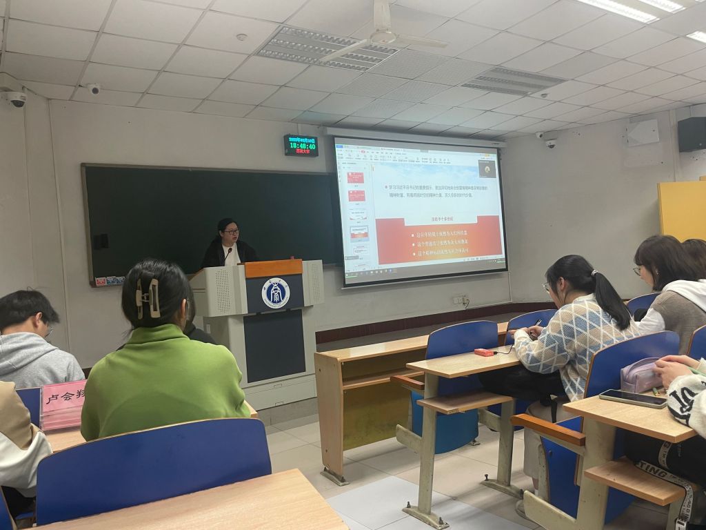 许老师首先导读了“把雷锋精神代代传承下去——纪念毛泽东等老一辈革命家为雷锋同志题词六十周年”座谈会上,习近平总书记对深入开展学雷锋活动作出的重要指示精神。其次,许老师带领同学们一起学习了公司弘扬雷锋精神师生座谈会上师生代表交流发言内容,学习各单位在传承雷锋精神、打造志愿服务品牌活动方面的有益做法和工作思考。主要包括“中宣团”指导教师、马克思主义公司副教授方建老师对雷锋精神的阐释,雷锋精神是时空的力量,具有历久弥新的价值,围绕“变与不变”指出社会环境在变,但雷锋精神的引领价值没有变;群体特征在变,雷锋精神的育人价值没有变;活动形式在变,雷锋精神的感召价值没有变。校团委书记于涛老师从把握时代境遇、弘扬传统优势和推进格局建构三个方面对公司“西小兰”志愿者传承雷锋精神的工作思考和成绩实效的介绍。物理科学与技术公司党委副书记刘汭雪介绍公司历史最悠久的学雷锋团队“红帽子”的历史发展和自己对于学习雷锋精神的感受。还有食品科学公司火柴头失物招领爱心公益组织成立以来的暖心故事,外国语公司“北碚星期日英语班”、美术公司“义务画像”志愿服务队的历史故事和发展现状。