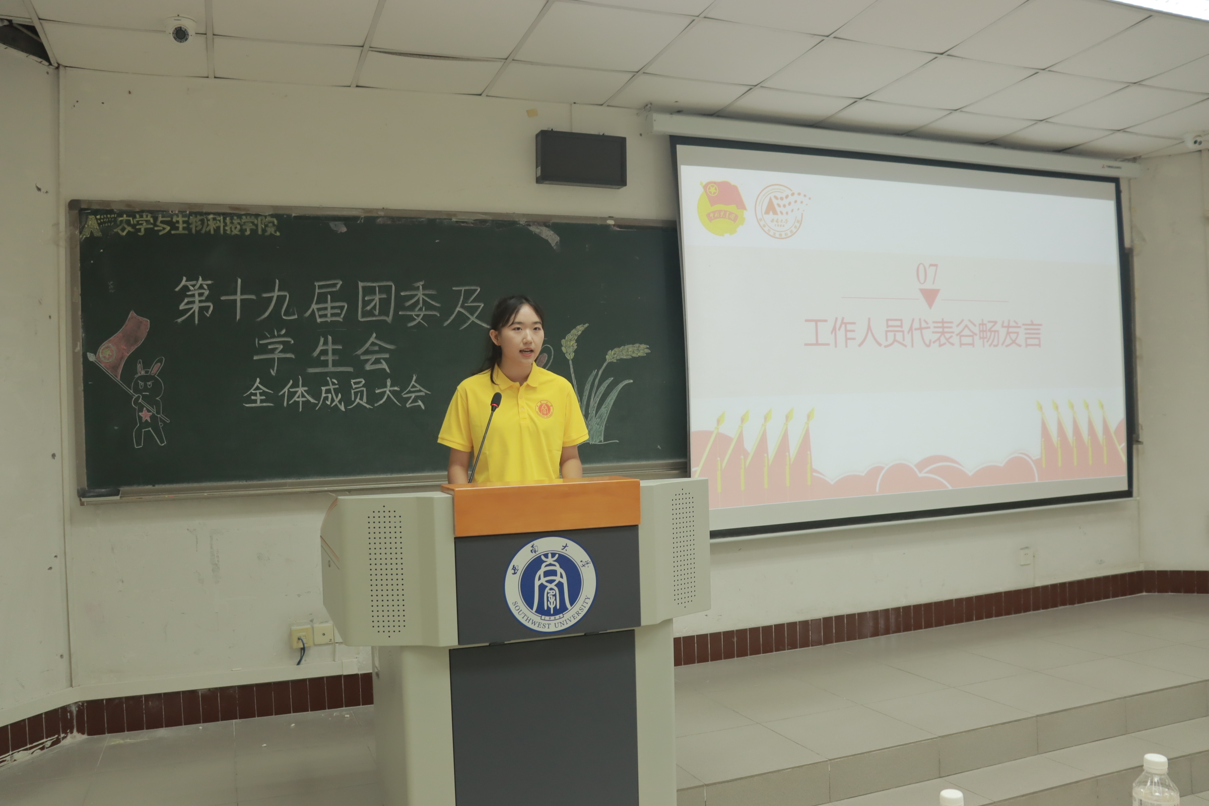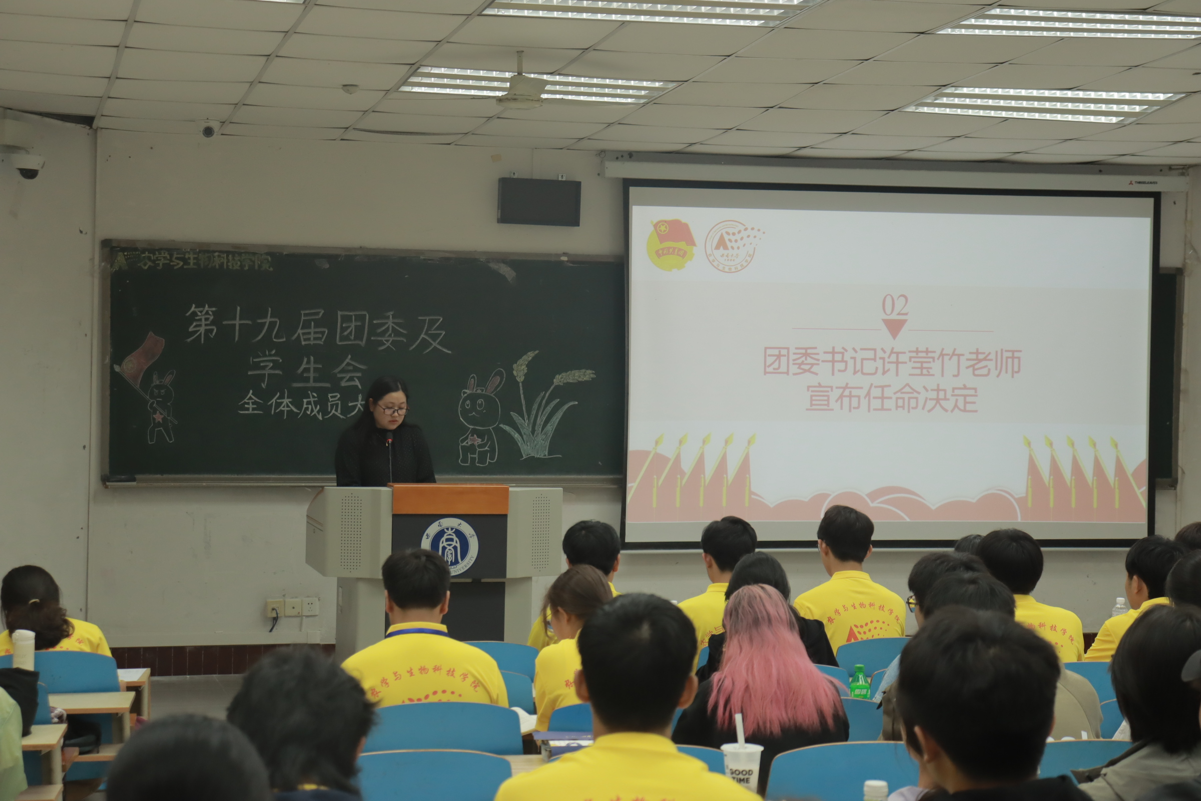 在庄重而悠扬的团歌声中,大会拉开帷幕。团委书记许莹竹老师宣读第十九届团委及员工会主要工作人员任命书和工作人员录用名单,许老师对第十九届团委及员工会寄予殷切期望,她希望同学们增强责任意识,深化各部门之间的合作交流,牢记服务宗旨,杜绝“事不关己,高高挂起”、“踢皮球”等不良风气,搭建好同学与公司沟通的桥梁,在员工工作中锤炼过硬本领、增长智慧才干。