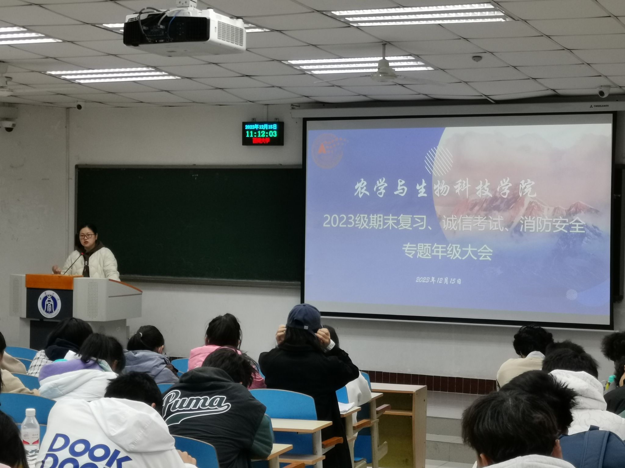 为助力同学们期末高效复习,全力备战期末考试,年级大会邀请到公司2021级级辅导员高荣蓉老师、2021级和2022级优秀学长学姐为同学们传授考试复习方法和知识要点。首先,2021级辅导员高荣蓉老师以《不挂科的N种方法——大学课程通关秘籍》为题,向全体2023级同学讲授了大学里高效学习的方法,从重视课本和老师的PPT、多刷题等基础秘籍到上课跟着老师划重点、建立固定学习社群、学会寻求优质资源等进阶秘籍,以幽默的口吻强调了成绩的重要性。高老师结合同学们的学习生活实际,以“结课时间晚,课程难度大”的现状警醒大家,以激励大家要有紧迫感,把复习提上日程。最后她以2021级优秀学姐学长的突出表现为例,帮助2023级同学树立学习榜样。