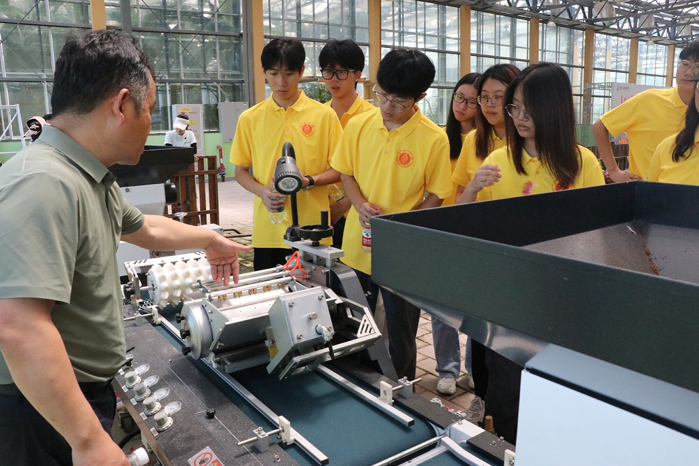 上午,实践团首先参观了集科普研学、数字智能、休闲娱乐、乡村旅游等功能为一体的金色黄庄大地乐园项目区。以农业科技为主题的1号场馆从育种、栽培、未来5G智能农业等方面集中展示最新农业技术成果,包含立柱水培、气雾培、立柱基质培、复合栽培等43种先进栽培模式,智能施肥机、水动力A字形栽培种植架等10项先进装备、290余种植物。馆内所有管道水培、滴灌技术采用智能化集中化的智慧农业管理,实现了人工成本和劳作时间的节约。智能化的管道水培和滴灌技术更是让同学们惊叹不已,大家纷纷感叹新时代农业科技发展迅速,未来现代农业发展可以探索更多可能。针对场内水培生菜长势不好的状况,实践团的徐新福老师立即进行了现场指导,指出水培管道流速缓慢、供氧量不足导致根系发育不良是主要原因,并提出了一系列切实可行的解决方案。徐老师深入浅出的现场教学,不仅解决了当前的技术难题,也让同学们对现代农业的精细化管理有了更加深刻的理解和体会,立志学好专业知识和技能以解决农业生产中的实际问题。
