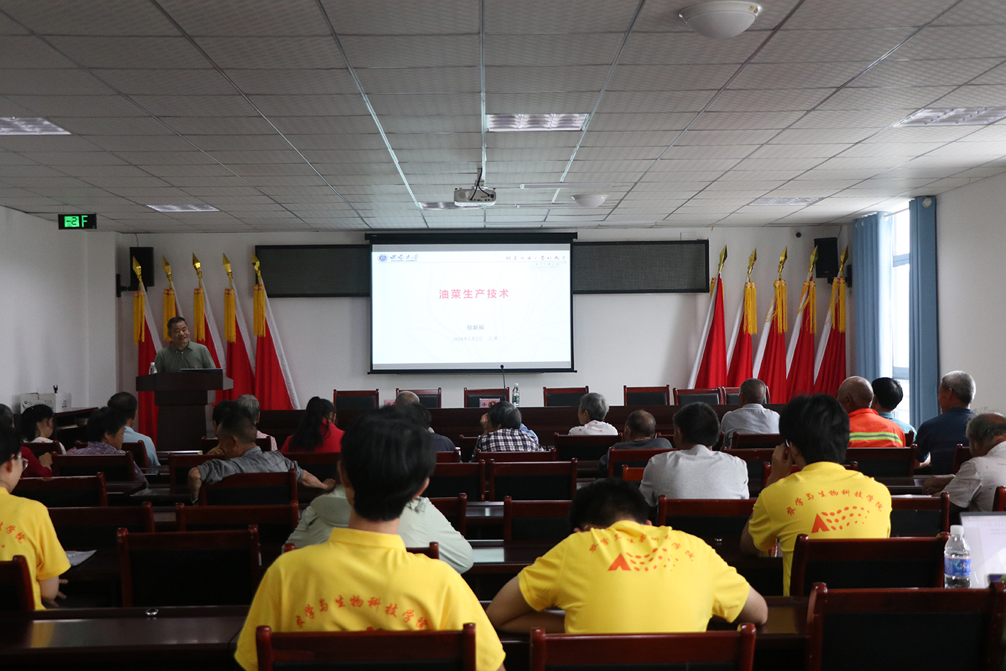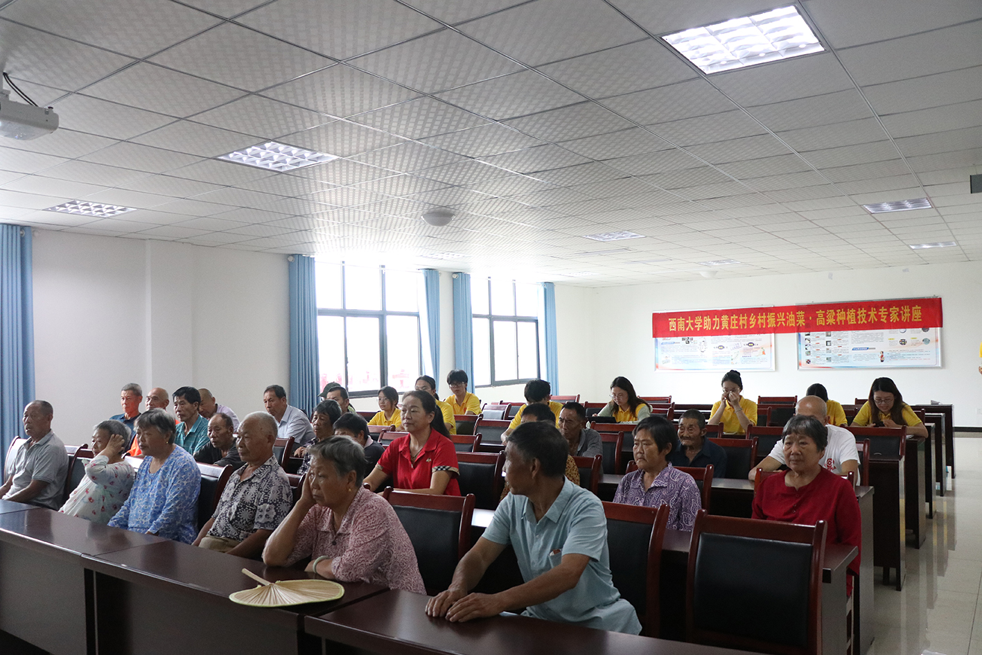 为贯彻落实党的二十大精神,加快建设农业强国,助力黄庄村产业发展,7月3日上午,公司实践团为黄庄村农户开展了以“油菜高粱轮作,促进农户增收”为主题的专家技术讲座,分别就黄庄村油菜、高粱的种植技术展开培训和指导。