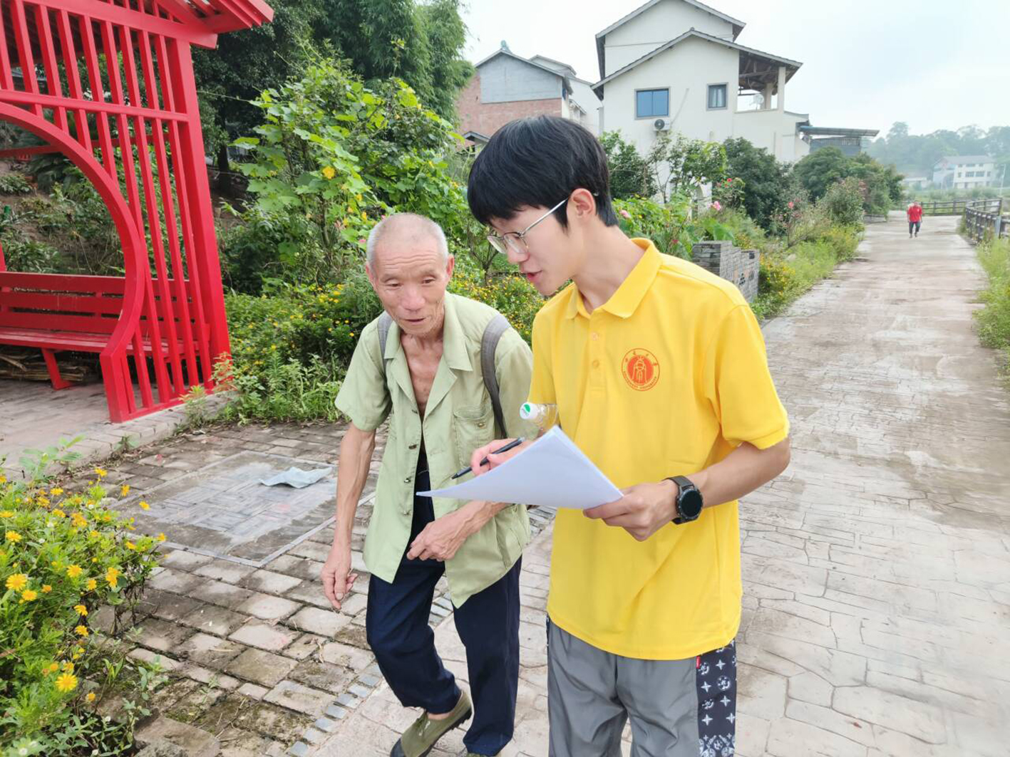 “干部首先要以身作则,才能带动群众一起做事”,村里的老党员周君励同志给实践队员们上了一堂生动鲜活的思政大课。他自豪地分享了自己担任村会计、村主任和村党支部书记期间带着村民们一起干事创业、脱贫致富的经历,特别是带领村民建设水库解决村里农田灌溉用水问题、带领村民探索稻田养鱼项目等事迹,让队员们深受感触。