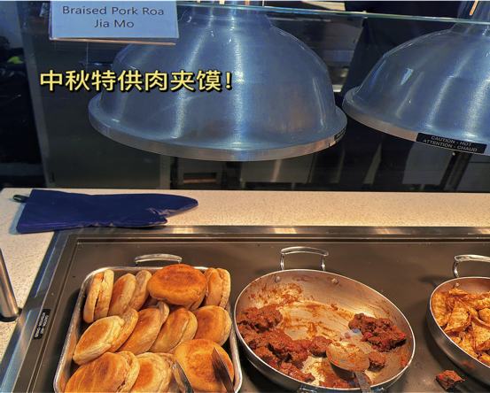 节日当天,公司食堂还精心准备了多款中国美食,包括蛋黄莲蓉月饼和肉夹馍。这些美味佳肴不仅满足了我们中国职工的味蕾享受,也点燃了大家内心的温馨情感,让身在美国的学子们仿佛置身于故乡的怀抱。